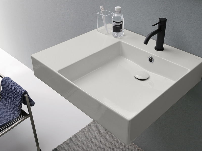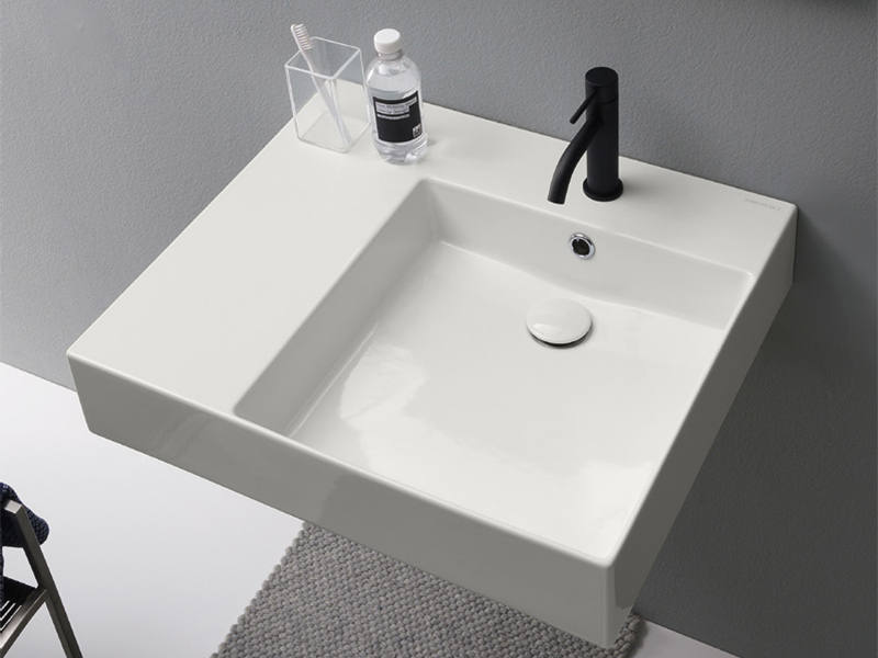 SCARABEO TEOREMA 2.0 PLUS 5148 Раковина накладная или подвесная с одним отверстием под смеситель, с переливом, чаша справа, Крепления входят в комплект. Цвет Pearl. Подходит как для взрослых, так и для детей, а также и людям с ограниченными физическими возможностями.