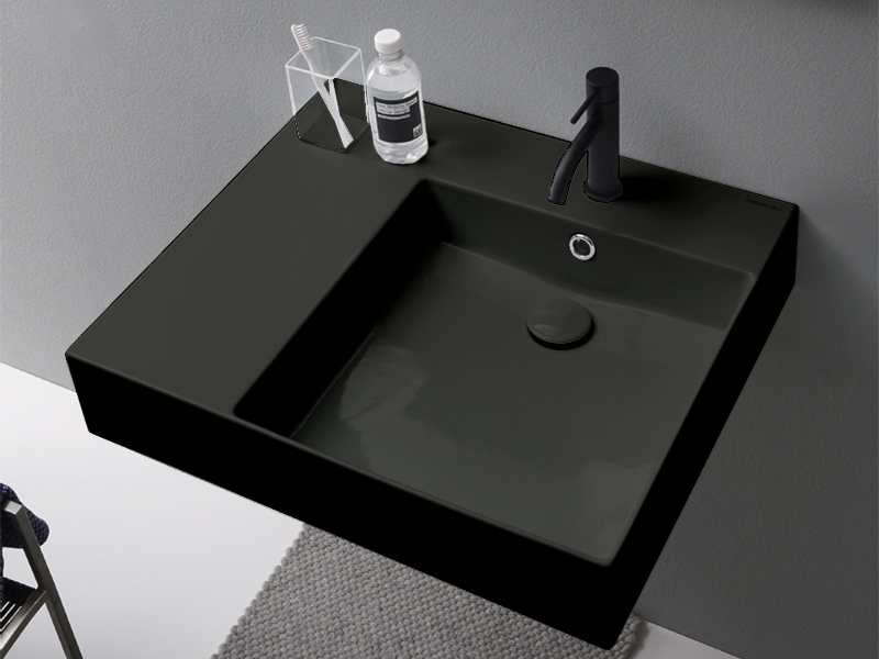 SCARABEO TEOREMA 2.0 PLUS 5148 Раковина накладная или подвесная с одним отверстием под смеситель, с переливом,чаша справа, Крепления входят в комплект. Цвет Ardesia. Подходит как для взрослых, так и для детей, а также и людям с ограниченными физическими возможностями.
