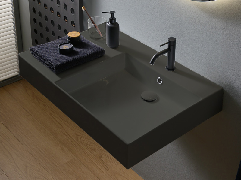 Глубокая чаша, расположенная справа с одним отверстием под смеситель, и наличие перелива обеспечивают удобство и функциональность при повседневном использовании. Керамическое исполнение гарантирует прочность и долговечность материала, что делает подвесную раковину надежным и практичным элементом ванной комнаты.