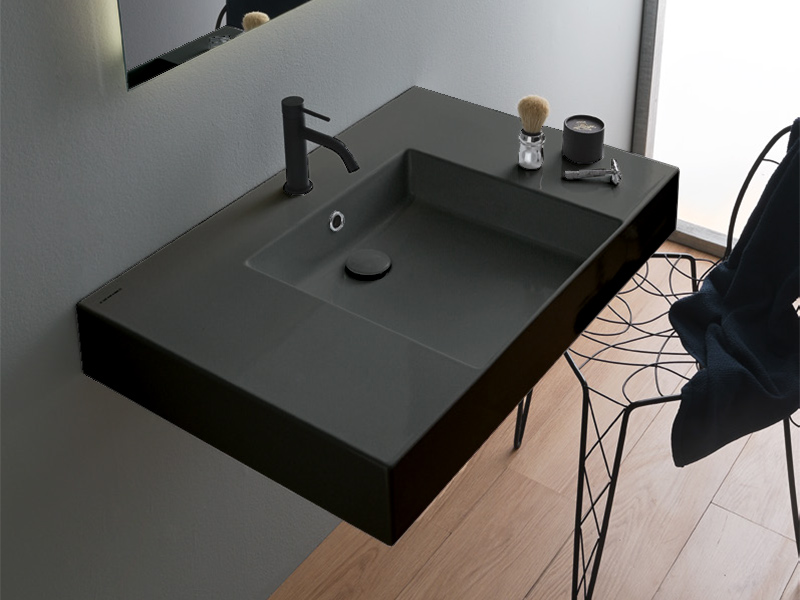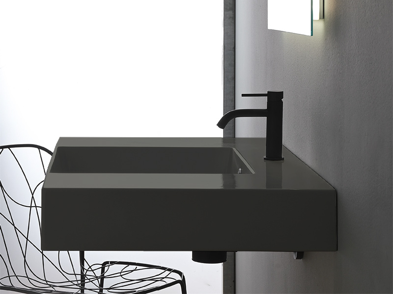 Раковина Scarabeo может быть как накладной, так и подвесной, в зависимости от ваших предпочтений и характеристик ванной комнаты. Чаша прямоугольной раковины расположена посередине с одним отверстием под смеситель, что делает ее использование удобным и практичным. Встроенный перелив обеспечивает дополнительный уровень защиты от переполнения и придает накладной раковине завершенный вид.
