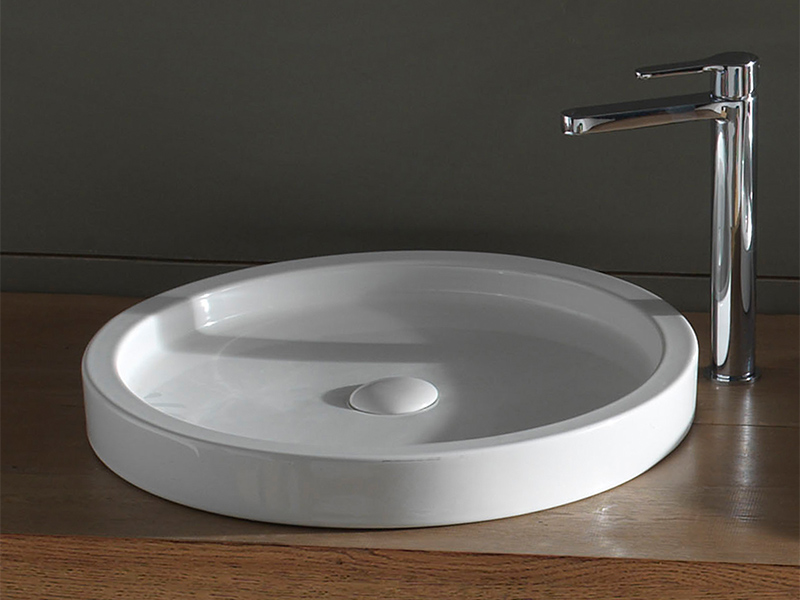 Эта накладная круглая раковина не имеет отверстия под смеситель и перелива, что делает ее особенной и нестандартной. Такой дизайн привнесет индивидуальность в вашу ванную комнату и подчеркнет ее современный стиль.