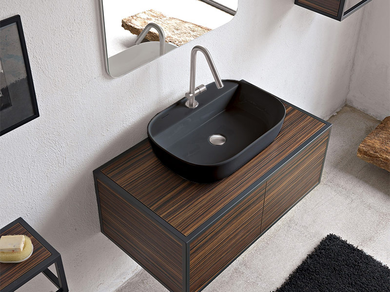 SCARABEO GLAM 56/R 1802 Раковина накладная без перелива с одним отверстием под смеситель. Рекомендуется установка на столешницу. Размеры: 56x38x14h см. Цвет Ardesia. Представленная модель раковины существует в различных цветовых решениях.