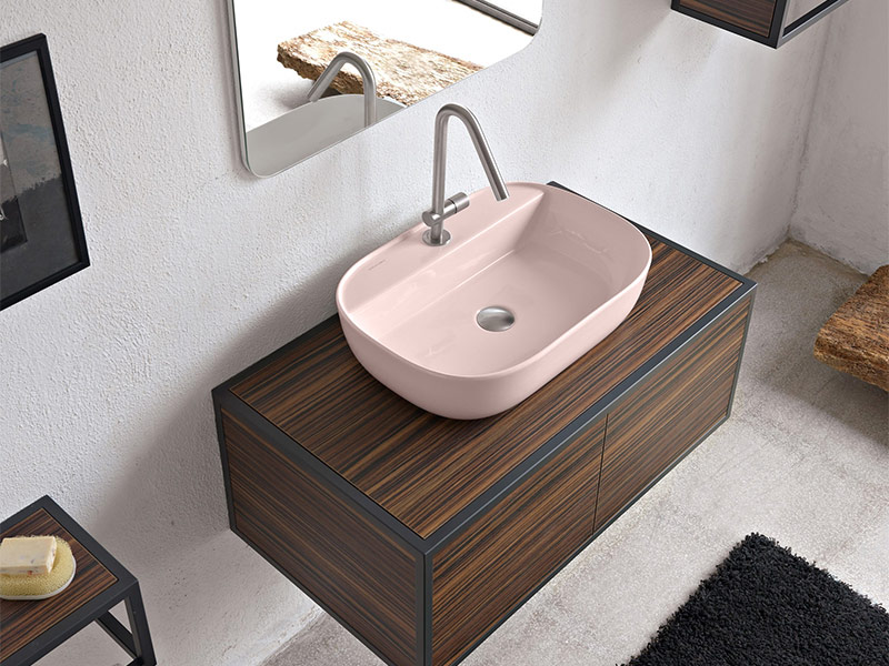 SCARABEO GLAM 56/R 1802 Раковина накладная без перелива с одним отверстием под смеситель. Рекомендуется установка на столешницу. Размеры: 56x38x14h см. Цвет Antique Pink. Представленная модель раковины существует в различных цветовых решениях.