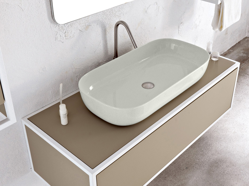Scarabeo GLAM 1803 Раковина накладная без перелива, без отверстия под смеситель, размер 76х39х14 см, Цвет Pearl. Рекомендуется для установки на столешницу. Представленная модель раковины существует в различных цветовых решениях.
