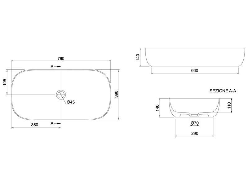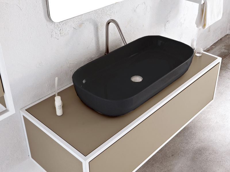 Scarabeo GLAM 1803 Раковина накладная без перелива, без отверстия под смеситель, размер 76х39х14 см, цвет Ardesia. Рекомендуется для установки на столешницу. Представленная модель раковины существует в различных цветовых решениях.