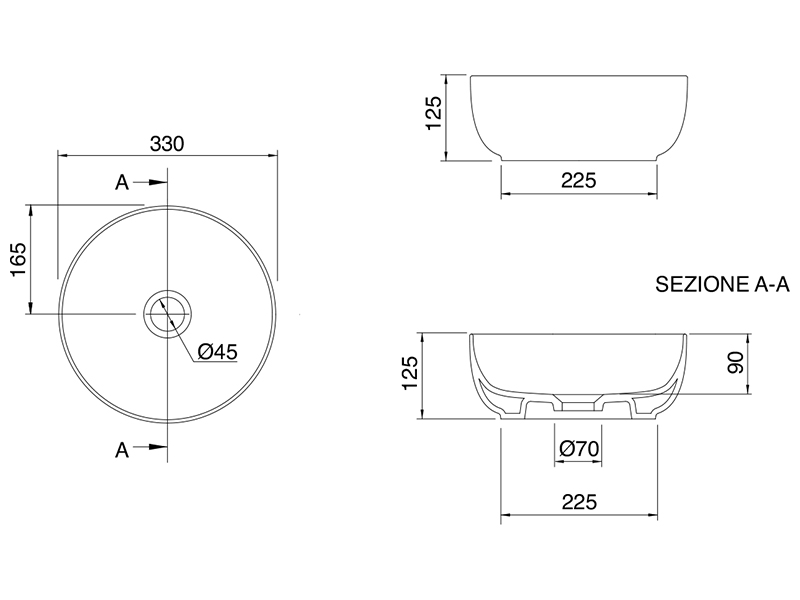 Scarabeo GLAM 1808 Раковина - чаша накладная круглая без перелива, без отверстия под смеситель. Размеры: 33х33х12,5h см. Цвет Ocean. Рекомендуется донный клапан арт. 10034.