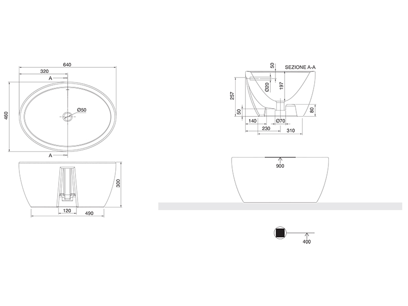 SCARABEO MATTY 8056 Раковина накладная без отверстия под смеситель, с сливом - переливом. Размеры: 46x64x30h см. Рекомендуется установка на столешницу. цвет White.