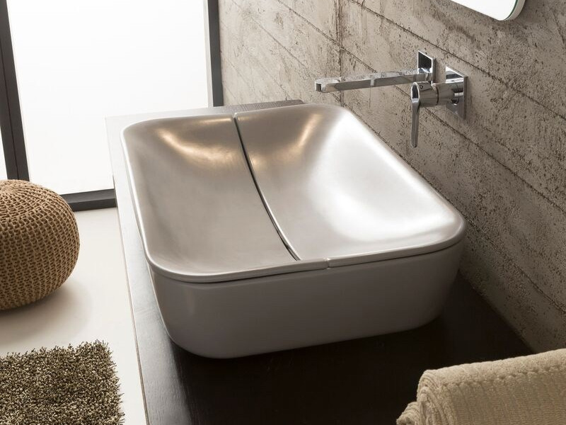 SCARABEO MIZU 9003 Раковина с крышкой накладная без отверстия под смеситель, без перелива. Размеры: 70x45x15h см. Рекомендуется установка на столешницу. цвет White.