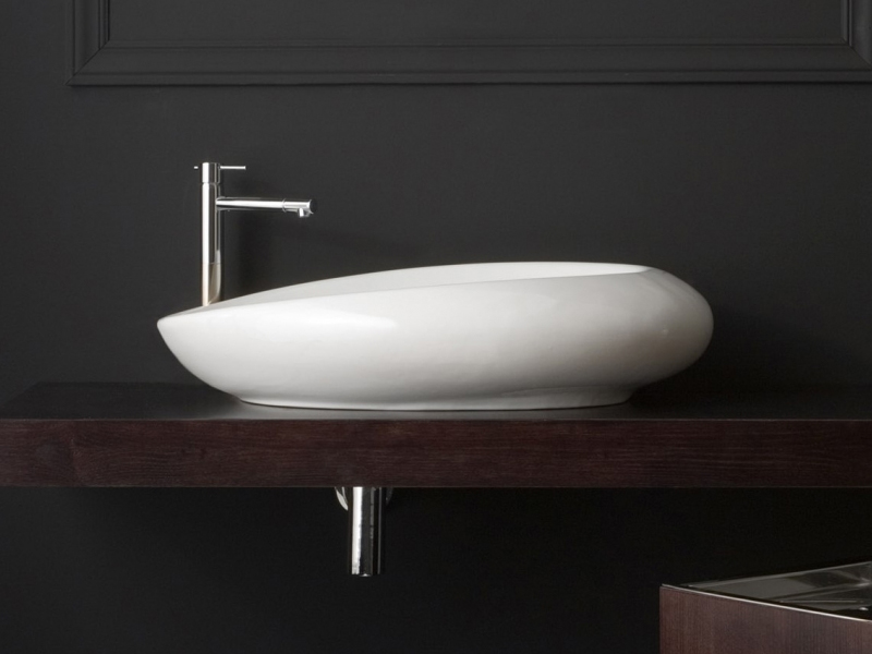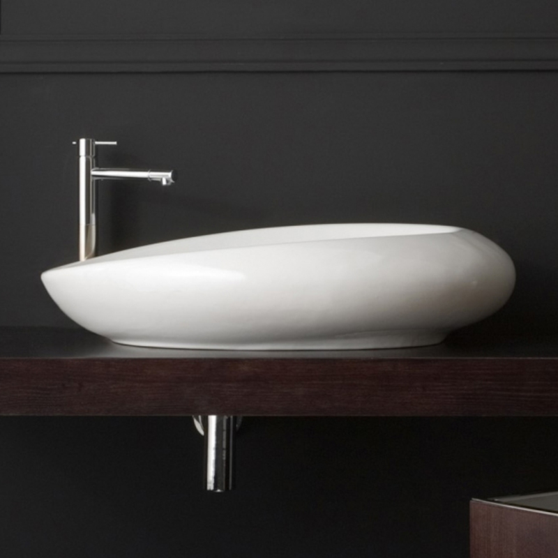 SCARABEO MOAI 8601 Раковина накладная без отверстия под смеситель, без перелива. Размеры: 71x46x18h см. Рекомендуется установка на столешницу. цвет белый глянцевый.