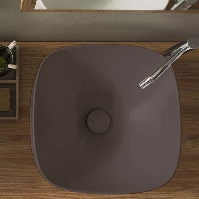 SCARABEO MOON 5501 Раковина накладная без отверстия под смеситель, без перелива. Размеры: 42x42x18h см. Рекомендуется установка на столешницу. Цвет Tobacco.