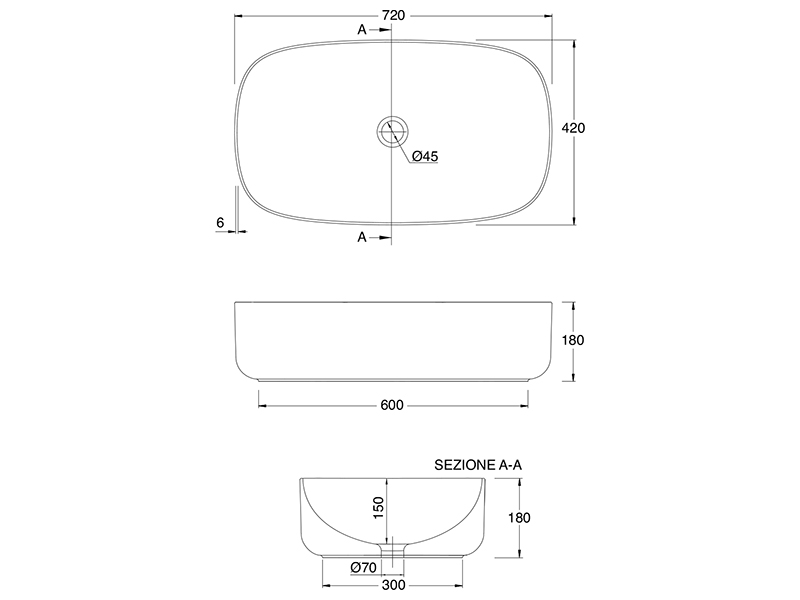 SCARABEO MOON 5502 Раковина накладная без отверстия под смеситель, без перелива. Размеры: 72x42x18h см. Рекомендуется установка на столешницу. Цвет White.