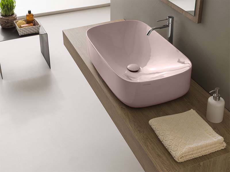 SCARABEO MOON 5502 Раковина накладная без отверстия под смеситель, без перелива. Размеры: 72x42x18h см. Рекомендуется установка на столешницу. Цвет Antique Pink.