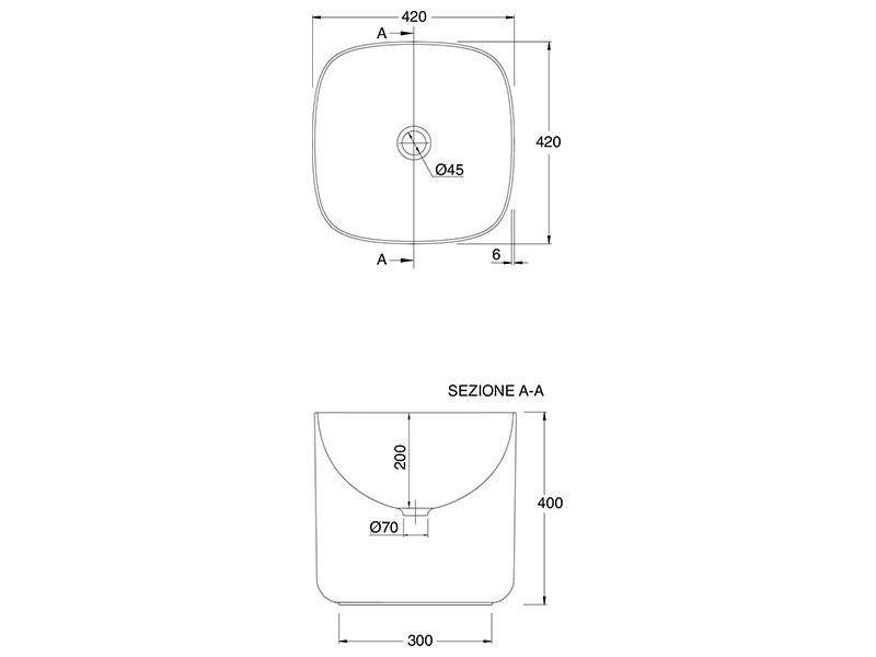 SCARABEO MOON 5503 Раковина накладная без отверстия под смеситель, без перелива. Размеры: 42x42x40h см. Рекомендуется установка на столешницу. Цвет Sand.