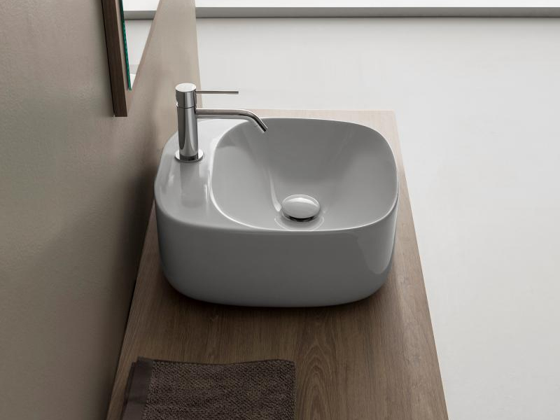 SCARABEO MOON 5504 Раковина накладная с одним отверстием под смеситель, без перелива. Размеры: 42x42x18h см. Рекомендуется установка на столешницу. Цвет White.