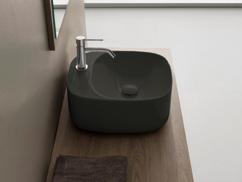 SCARABEO MOON 5504 Раковина накладная с одним отверстием под смеситель, без перелива. Размеры: 42x42x18h см. Рекомендуется установка на столешницу. Цвет Ardesia.