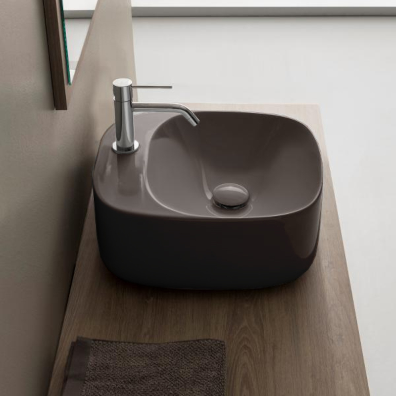 SCARABEO MOON 5504 Раковина накладная с одним отверстием под смеситель, без перелива. Размеры: 42x42x18h см. Рекомендуется установка на столешницу. Цвет Sand.