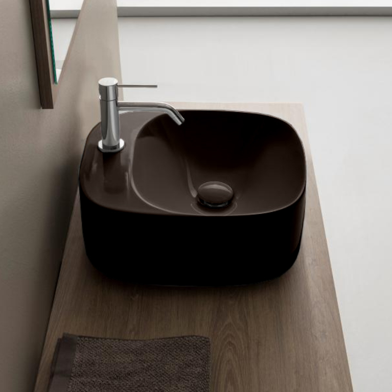 SCARABEO MOON 5504 Раковина накладная с одним отверстием под смеситель, без перелива. Размеры: 42x42x18h см. Рекомендуется установка на столешницу. Цвет Tobacco.