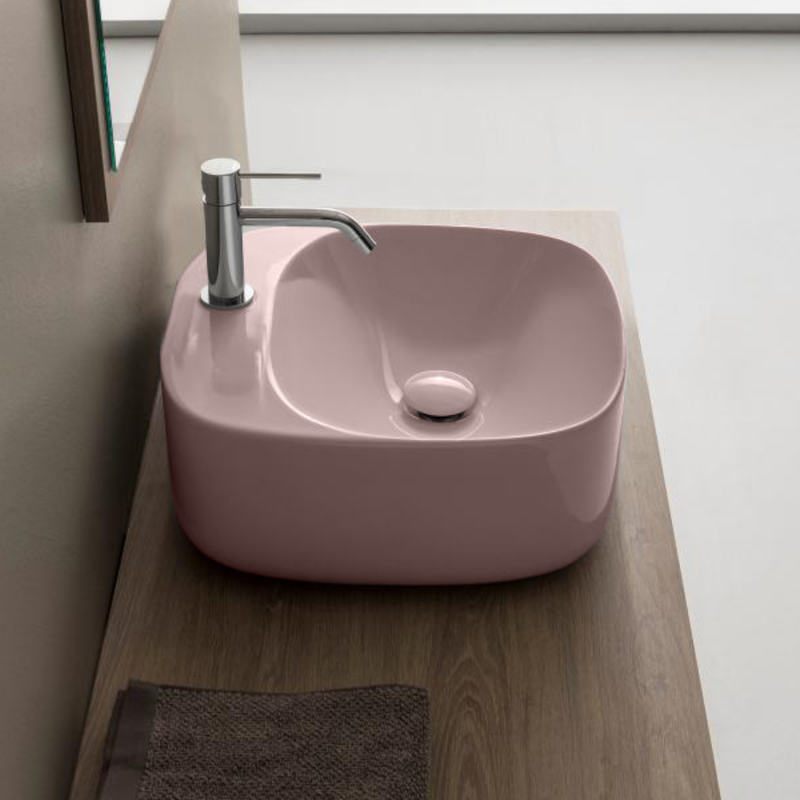 SCARABEO MOON 5504 Раковина накладная с одним отверстием под смеситель, без перелива. Размеры: 42x42x18h см. Рекомендуется установка на столешницу. Цвет Antique pink.