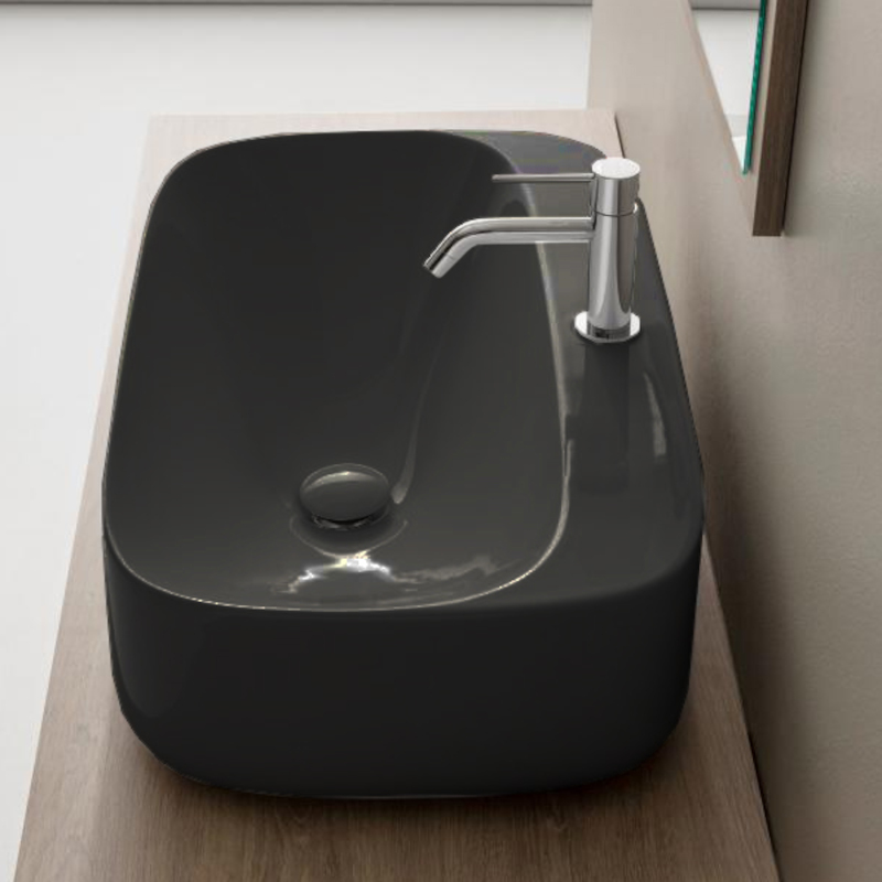 SCARABEO MOON 5505 Раковина накладная с одним отверстием под смеситель, без перелива. Размеры: 72x42x18h см. Рекомендуется установка на столешницу. Цвет Ardesia.