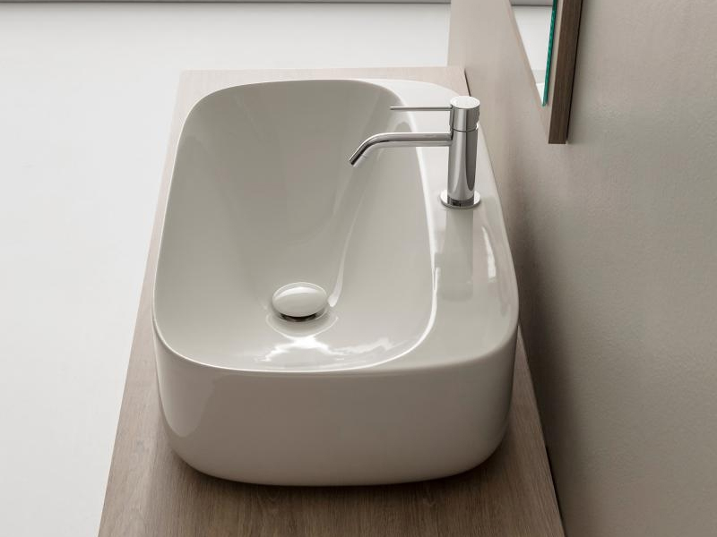 SCARABEO MOON 5506 Раковина накладная с одним отверстием под смеситель, без перелива. Размеры: 90x42x18h см. Рекомендуется установка на столешницу. Цвет White.