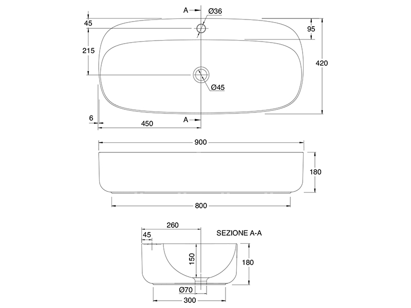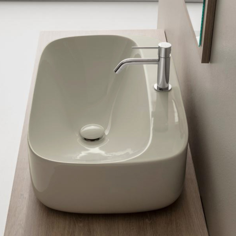 SCARABEO MOON 5506 Раковина накладная с одним отверстием под смеситель, без перелива. Размеры: 90x42x18h см. Рекомендуется установка на столешницу. Цвет Pearl.