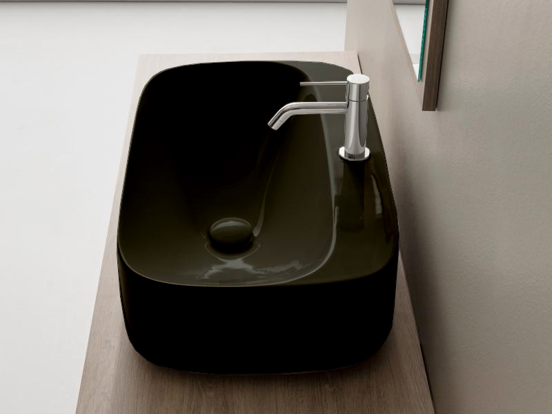 SCARABEO MOON 5506 Раковина накладная с одним отверстием под смеситель, без перелива. Размеры: 90x42x18h см. Рекомендуется установка на столешницу. Цвет Ardesia.