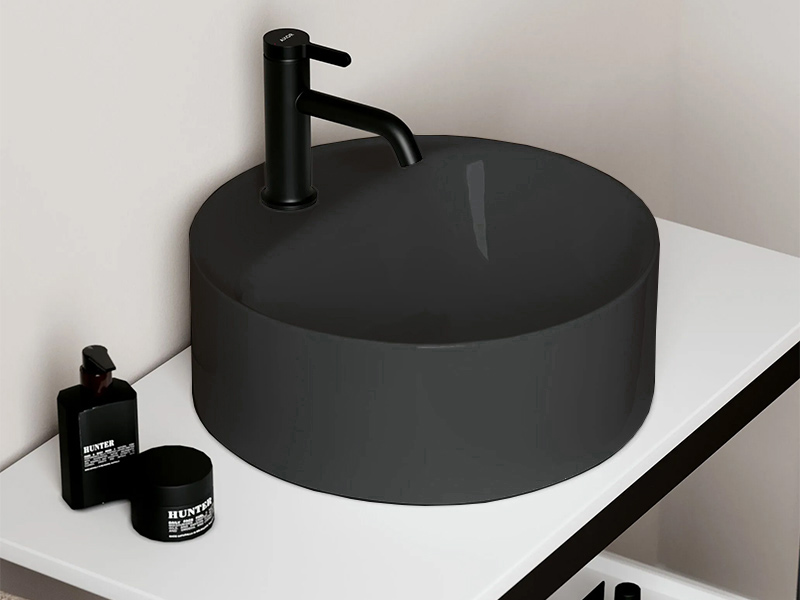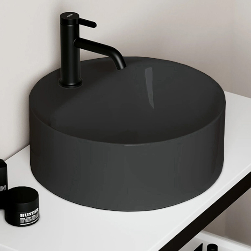 SCARABEO SKINNY 5401 Раковина круглая накладная с одним отверстием под смеситель, без слива-перелива. Размеры: 40x40x15h см. Цвет Night.