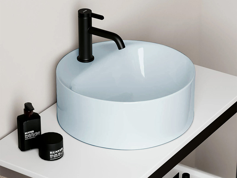 SCARABEO SKINNY 5401 Раковина круглая накладная с одним отверстием под смеситель, без слива-перелива. Размеры: 40x40x15h см. Цвет Glossy Air.