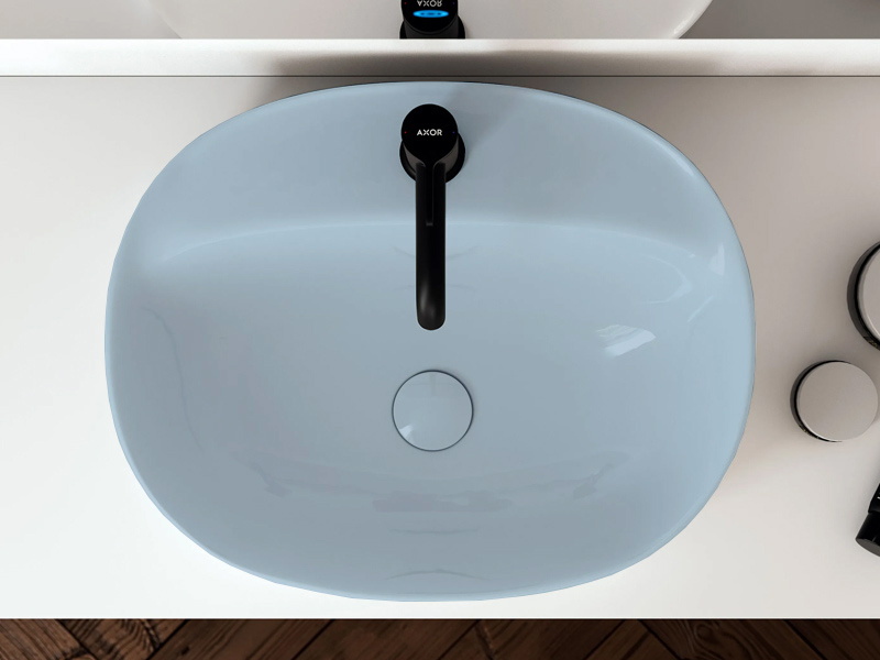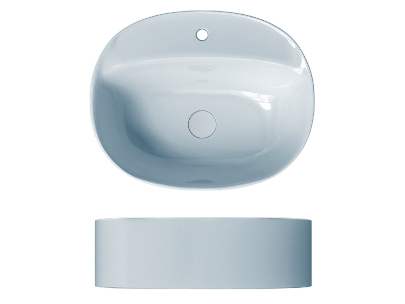 SCARABEO SKINNY 5402 Раковина накладная с одним отверстием под смеситель, без слива-перелива. Размеры: 50x40x15h см. Цвет Glossy Air.