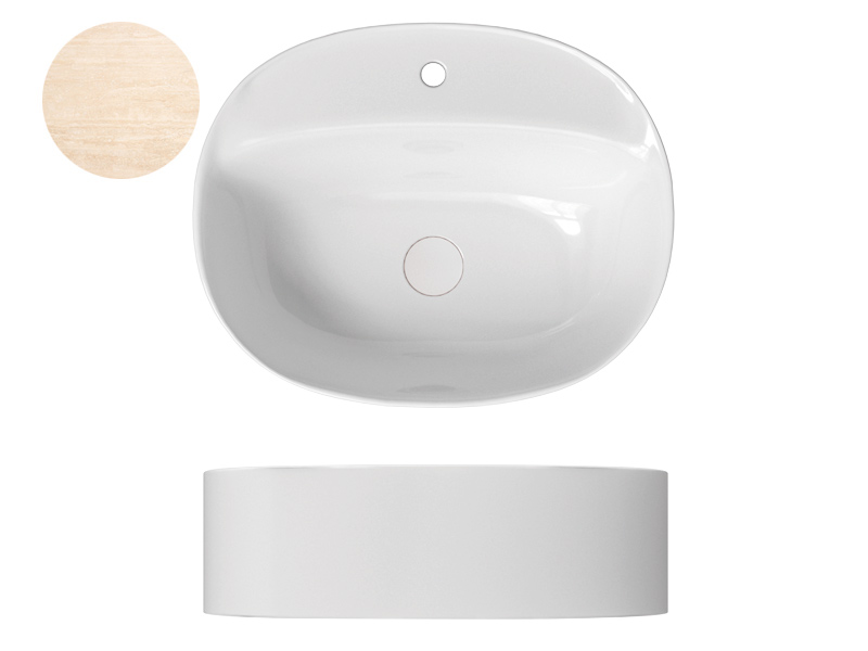 SCARABEO SKINNY 5402 Раковина накладная с одним отверстием под смеситель, без слива-перелива. Все стороны покрыты эмалью. Размеры: 50x40x15h см. Цвет travertine.