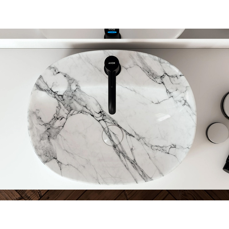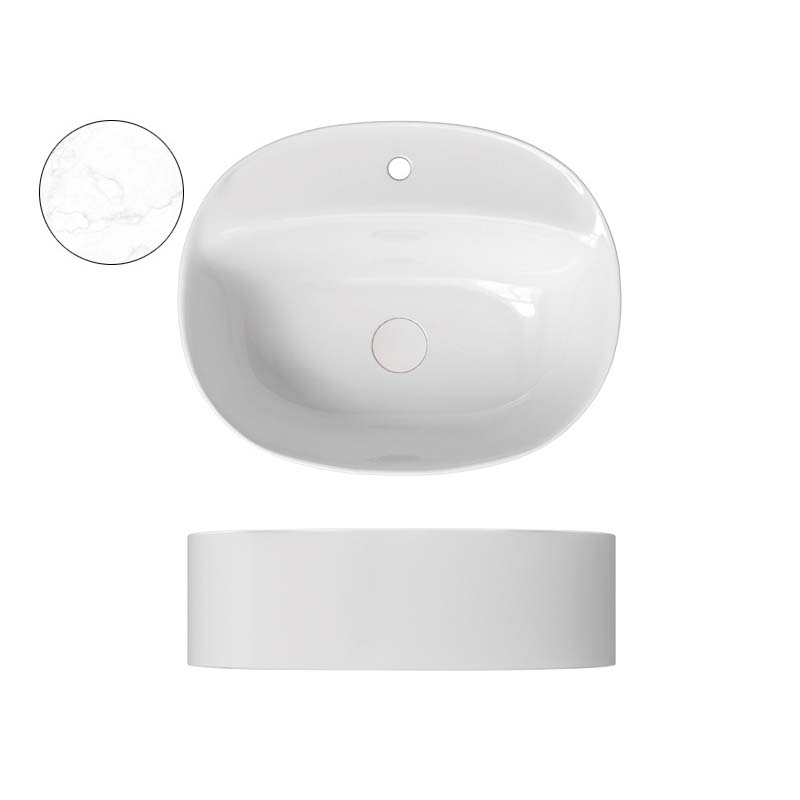 SCARABEO SKINNY 5402 Раковина накладная с одним отверстием под смеситель, без слива-перелива. Все стороны покрыты эмалью. Размеры: 50x40x15h см. Цвет Marble White.