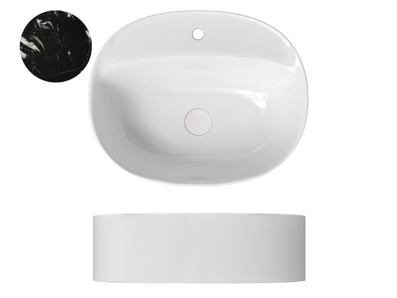 SCARABEO SKINNY 5402 Раковина накладная с одним отверстием под смеситель, без слива-перелива. Все стороны покрыты эмалью. Размеры: 50x40x15h см. Цвет Marble black.