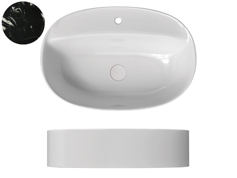 SCARABEO SKINNY 5403 Раковина накладная с одним отверстием под смеситель, без слива-перелива. Размеры: 60x40x15h см. Цвет Marble black.