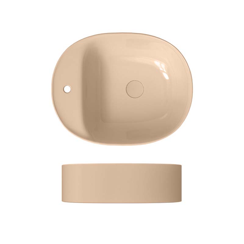 SCARABEO SKINNY 5404 Раковина накладная. Слева одно отверстие под смеситель, без слива-перелива. Все стороны покрыты эмалью. Размеры: 50x40x15h см. Цвет Glossy Peach.