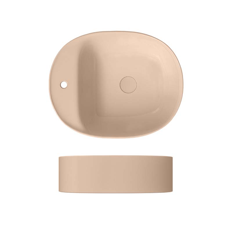 SCARABEO SKINNY 5404 Раковина накладная. Слева одно отверстие под смеситель, без слива-перелива. Все стороны покрыты эмалью. Размеры: 50x40x15h см. Цвет Matt Peach.