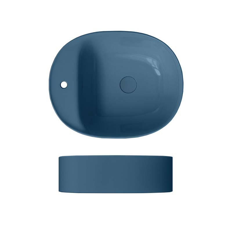 SCARABEO SKINNY 5404 Раковина накладная. Слева одно отверстие под смеситель, без слива-перелива. Все стороны покрыты эмалью. Размеры: 50x40x15h см. Цвет Glossy Ocean.