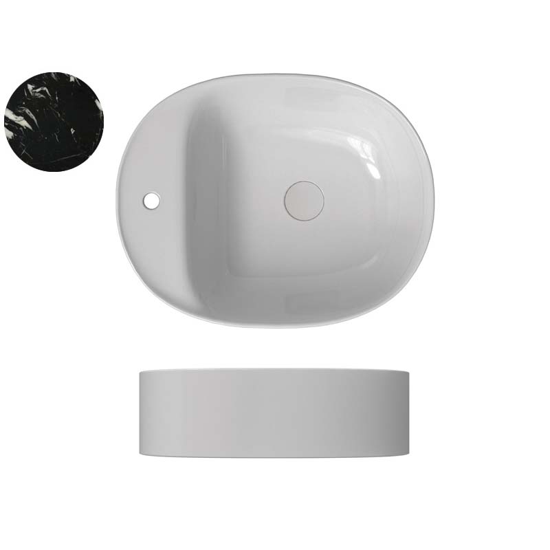 SCARABEO SKINNY 5404 Раковина накладная. Слева одно отверстие под смеситель, без слива-перелива. Все стороны покрыты эмалью. Размеры: 50x40x15h см. Цвет Marble Black.