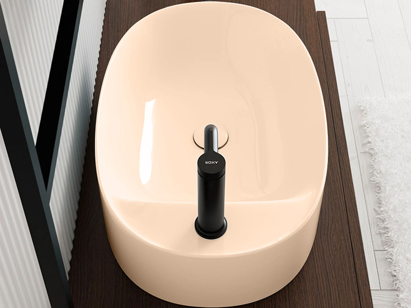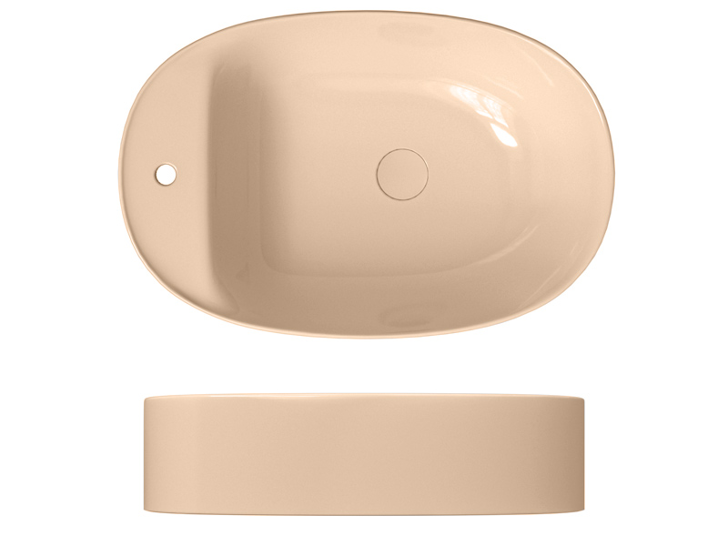 SCARABEO SKINNY 5405 Раковина накладная. Слева одно отверстие под смеситель, без слива-перелива. Все стороны покрыты эмалью. Размеры: 60x40x15h см. Цвет glossy Peach.