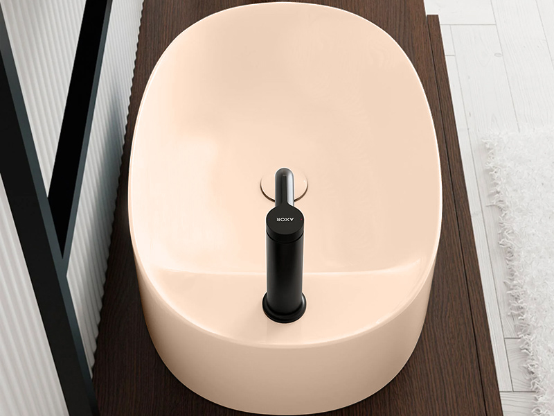 SCARABEO SKINNY 5405 Раковина накладная. Слева одно отверстие под смеситель, без слива-перелива. Все стороны покрыты эмалью. Размеры: 60x40x15h см. Цвет Matt peach.