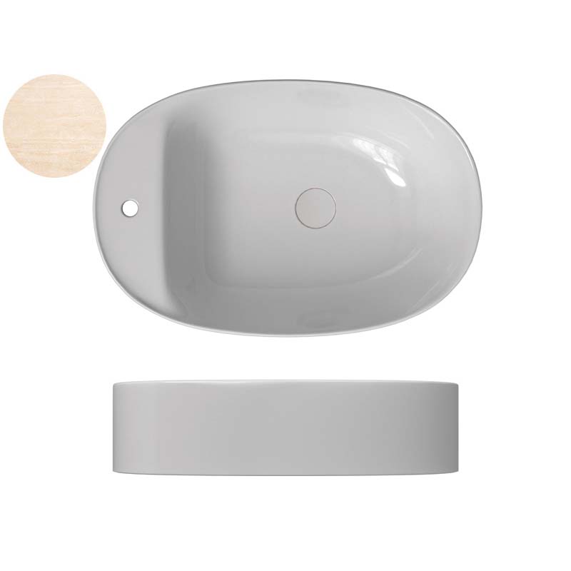 SCARABEO SKINNY 5405 Раковина накладная. Слева одно отверстие под смеситель, без слива-перелива. Все стороны покрыты эмалью. Размеры: 60x40x15h см. Цвет travertine.