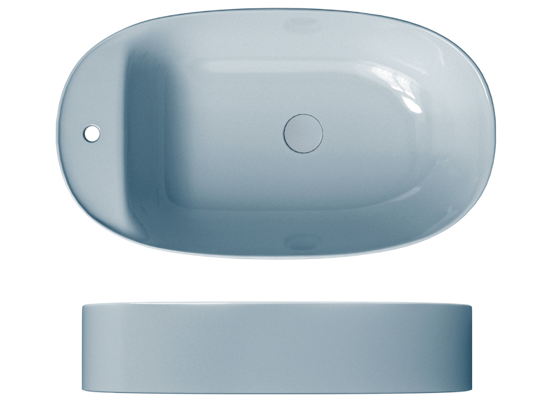 SCARABEO SKINNY 5406 Раковина накладная. Слева одно отверстие под смеситель, без слива-перелива. Все стороны покрыты эмалью. Размеры: 70x40x15h см. Цвет Glossy Air.