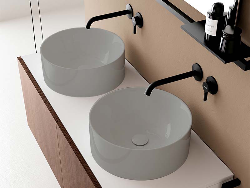 SCARABEO SKINNY 5407 Раковина-чаша круглая накладная без отверстия под смеситель, без слива-перелива. Размеры: 40x40x15h см. Цвет Glossy Sand.