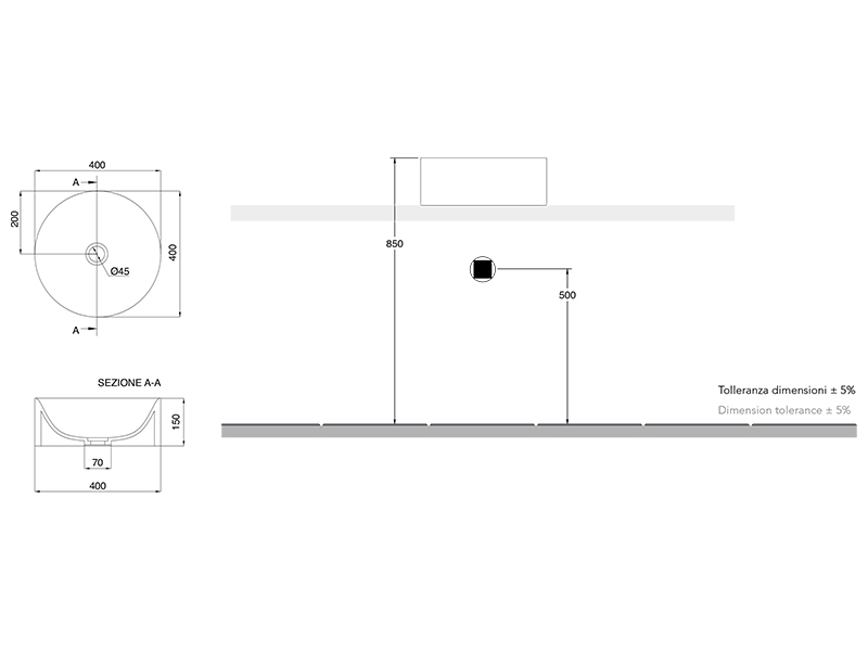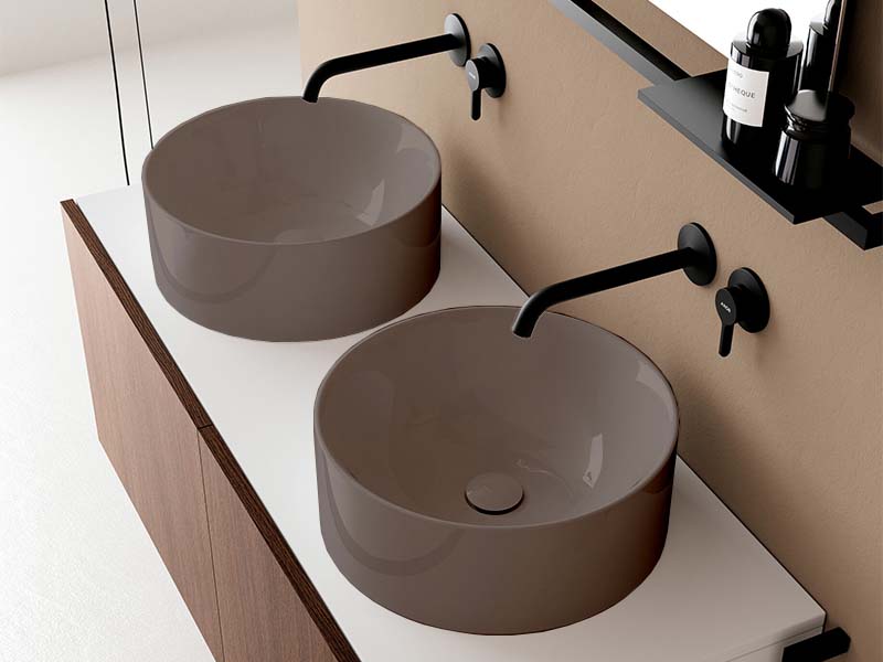 SCARABEO SKINNY 5407 Раковина-чаша круглая накладная без отверстия под смеситель, без слива-перелива. Размеры: 40x40x15h см. Цвет Glossy Tobacco.