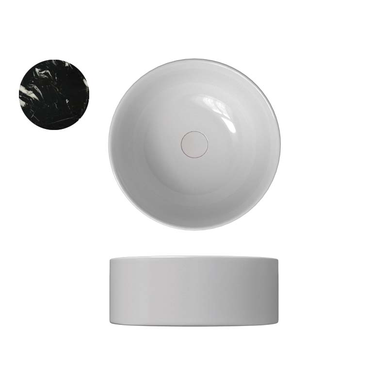 SCARABEO SKINNY 5407 Раковина-чаша круглая накладная без отверстия под смеситель, без слива-перелива. Размеры: 40x40x15h см. Цвет Marble black.