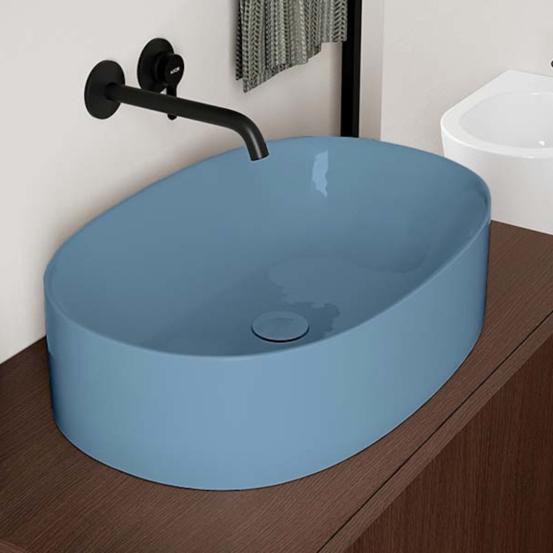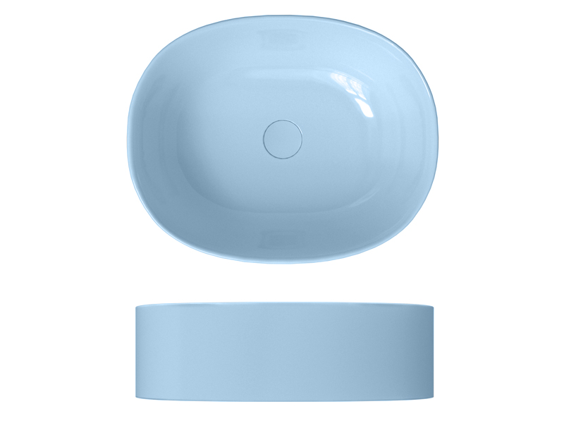 SCARABEO SKINNY 5408 Раковина накладная без отверстия под смеситель, без слива-перелива. Все стороны покрыты эмалью. Размеры: 50x40x15h см. Цвет Glossy Air.