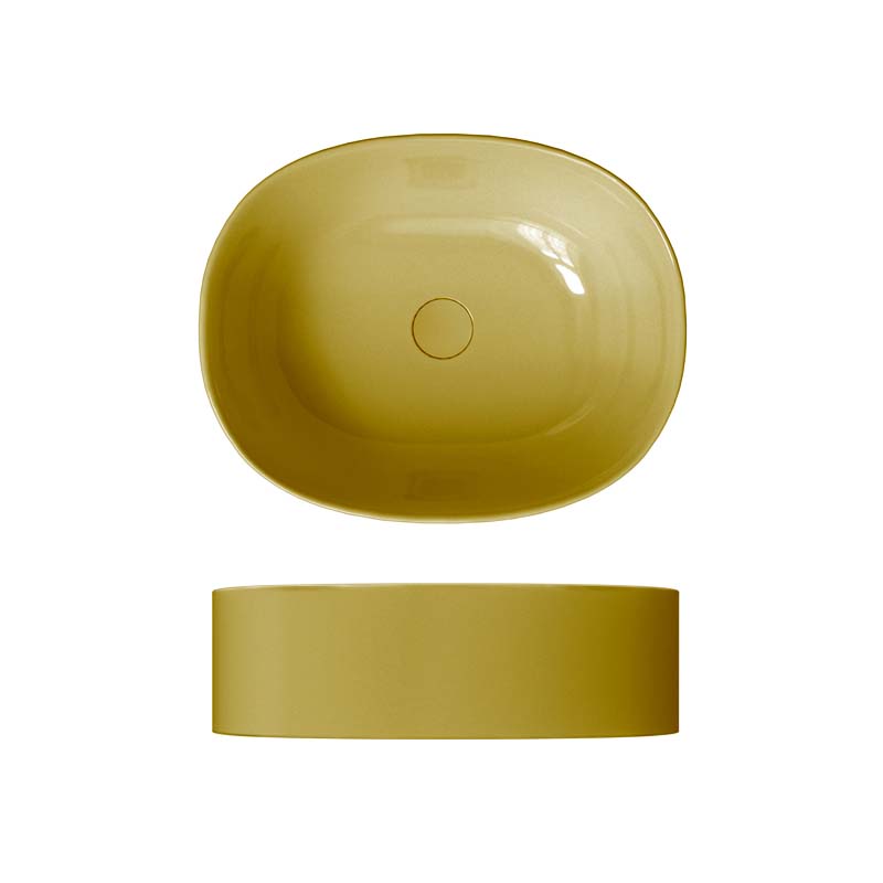 SCARABEO SKINNY 5408 Раковина накладная без отверстия под смеситель, без слива-перелива. Все стороны покрыты эмалью. Размеры: 50x40x15h см. Цвет Glossy Lime.
