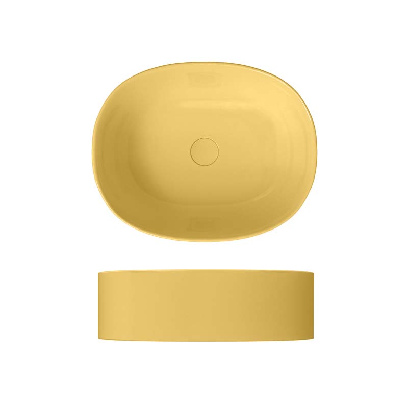 SCARABEO SKINNY 5408 Раковина накладная без отверстия под смеситель, без слива-перелива. Все стороны покрыты эмалью. Размеры: 50x40x15h см. Цвет Matt lime.