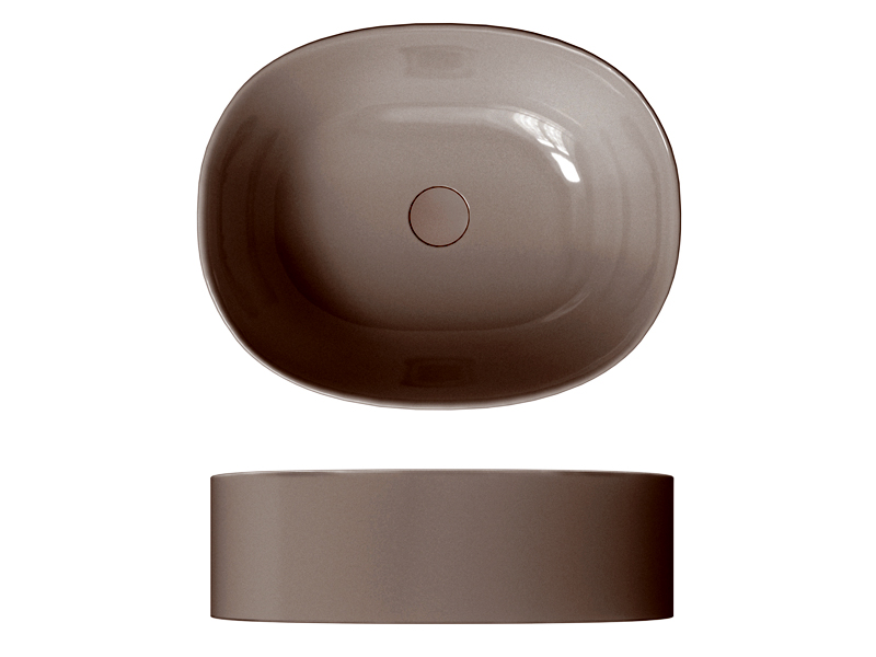 SCARABEO SKINNY 5408 Раковина накладная без отверстия под смеситель, без слива-перелива. Все стороны покрыты эмалью. Размеры: 50x40x15h см. Цвет Glossy Tobacco.