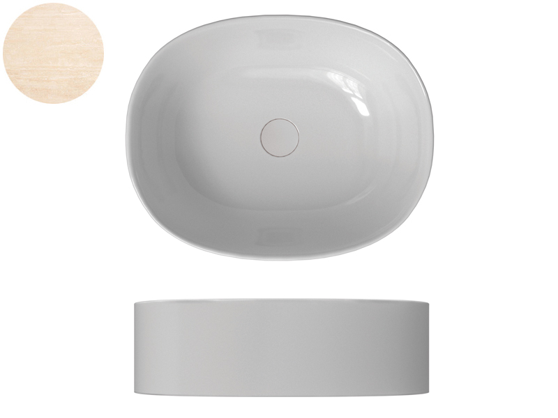 SCARABEO SKINNY 5408 Раковина накладная без отверстия под смеситель, без слива-перелива. Все стороны покрыты эмалью. Размеры: 50x40x15h см. Цвет marble White.