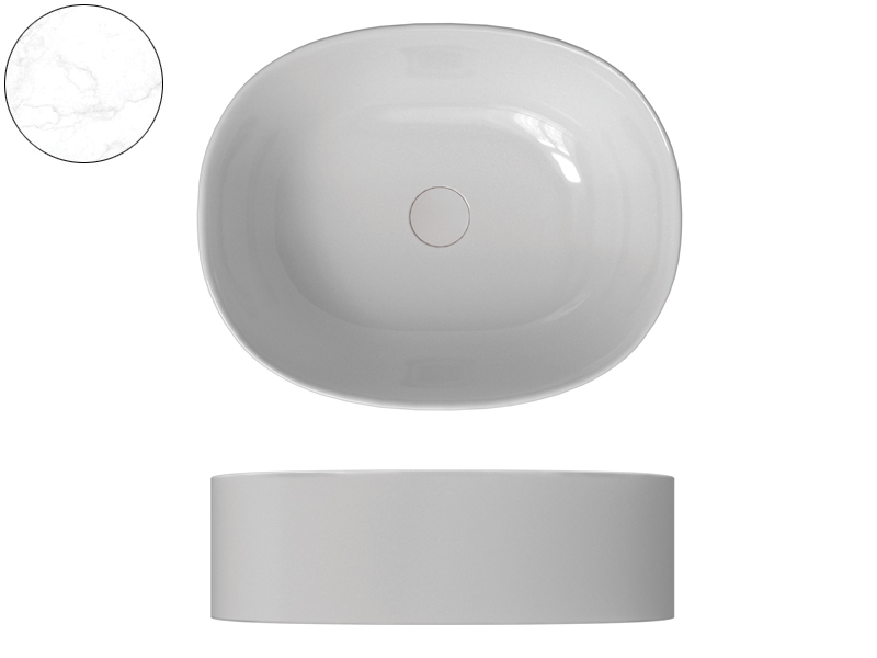 SCARABEO SKINNY 5408 Раковина накладная без отверстия под смеситель, без слива-перелива. Все стороны покрыты эмалью. Размеры: 50x40x15h см. Цвет Marble black.